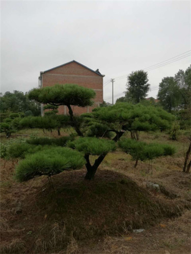 造型黑松:从山地野生的黑松林地,选取天然飞籽播种、生长矮小而粗壮的植株,或是石隙中生长出的老树树桩经过移植栽培,运用攀扎,修剪整枝等手法制作出姿态雄壮,高亢壮丽的造型黑松和黑松盆景。