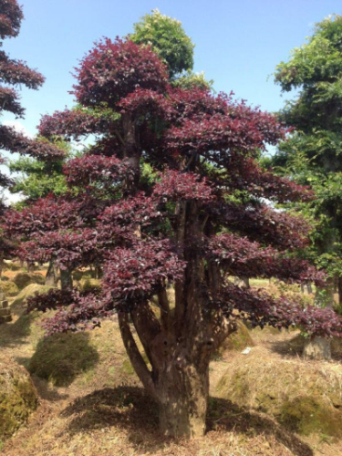 造型红花檵木常年叶色鲜艳、枝盛叶茂,特别是开花时瑰丽奇美极为夺目,是花、叶俱美的观赏树木。特别适宜种植在酒店、山庄、别墅门口以及私家花园、公园、广场内。