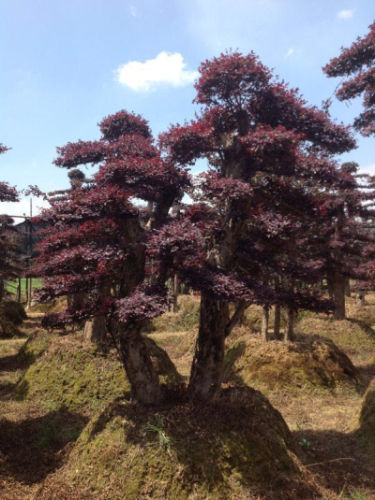 红花檵木造型产品主要类型有:盆景造型、单杆造型、多杆造型、矮桩造型和古桩造型等。